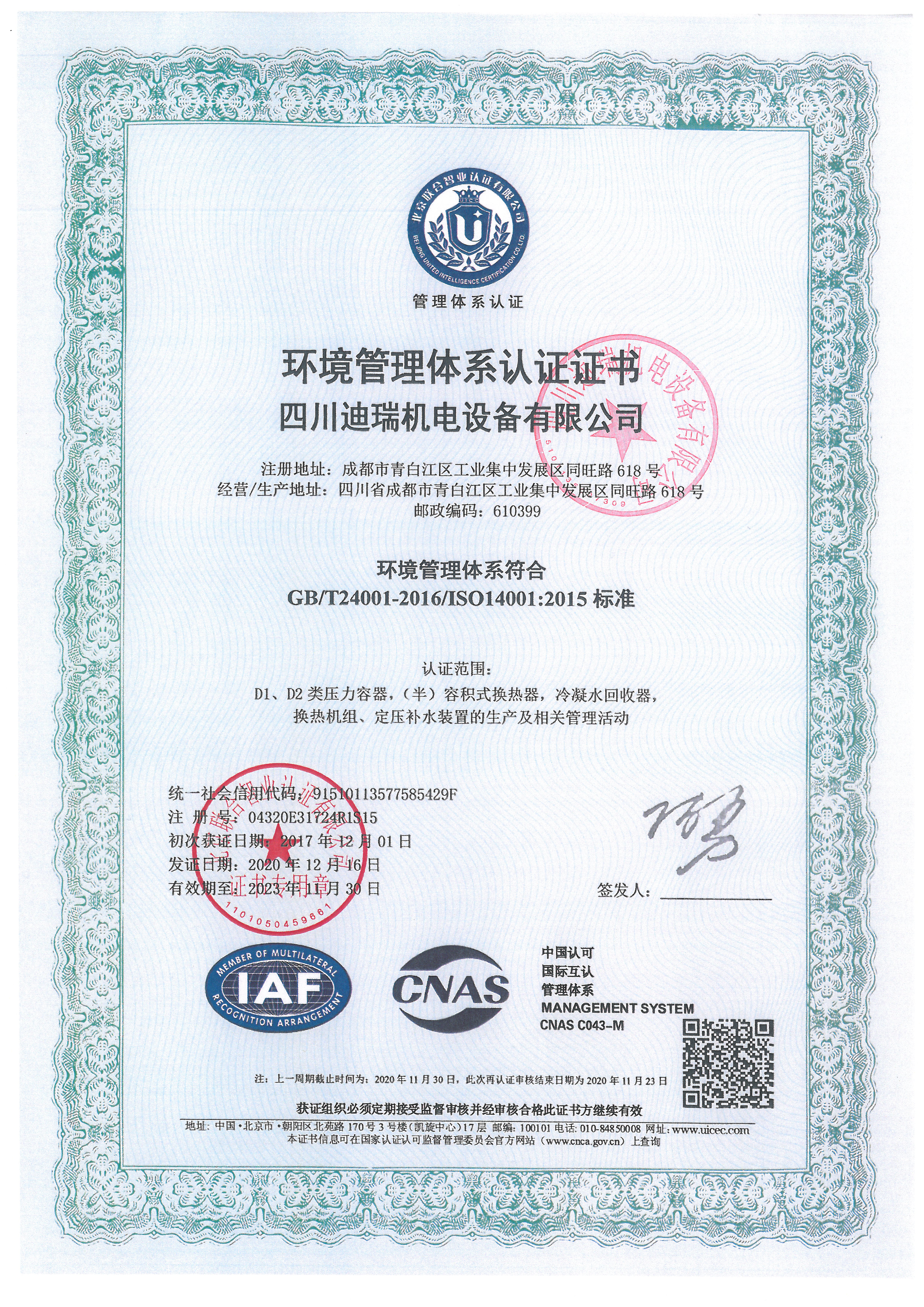壓力容器設(shè)計(jì)/制造證書(shū)
